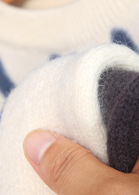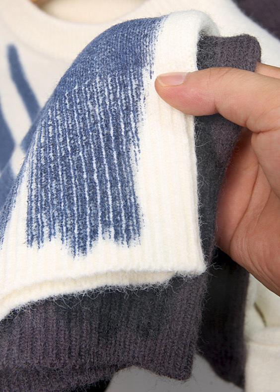 A soft plush sweater boasts a bold abstract pattern and a subtle textured finish, with a slightly oversized fit that creates a thick yet lightweight layer for cozy comfort.